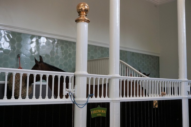 ロイヤル・ミューズの厩舎は、1820年代、ジョージ4世の時代に造られたもの。200年前には100頭ほどの馬が飼育されていましたが、現在では、およそ30頭のうちの数頭が日常的に任務にあたっているといいます。